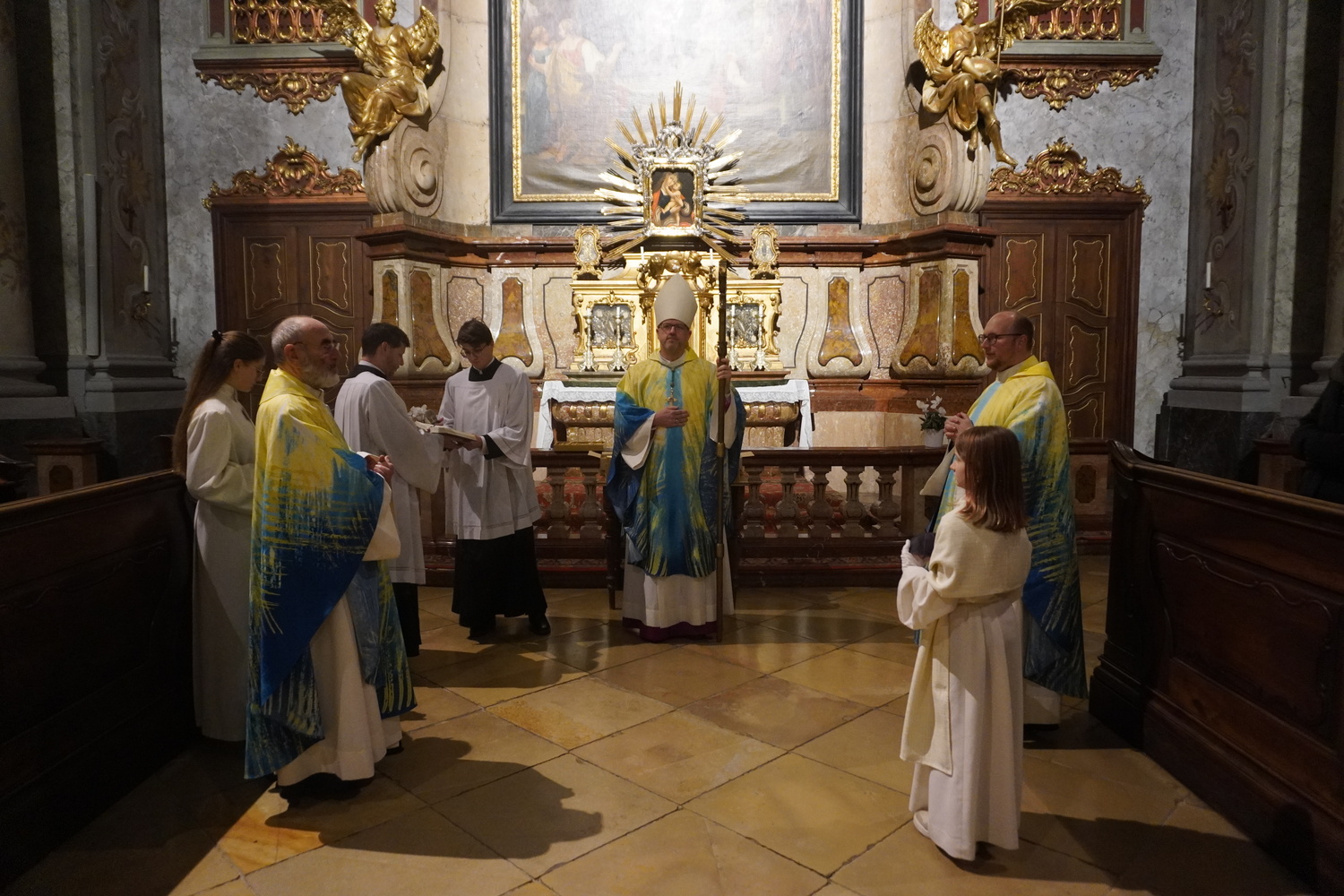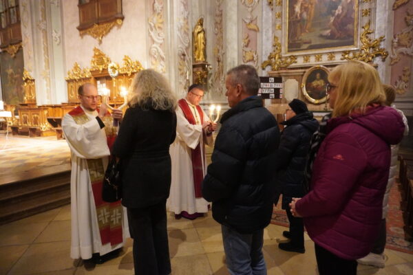 Das Fest der Darstellung des Herrn („Maria Lichtmess“) feierten wir dieses Jahr schon als Vorabendmesse zum eigentlichen Festtag am Abend des 1. Februars. Nach dem festlichen Einzug mit Orgelmusik segnete Propst Petrus beim Marienaltar die Kerzen, die in diesem Jahr in der Stiftskirche verwendet werden, und zog dann gemeinsam mit den Ministrantinnen und Ministranten sowie Stadtpfarrer H. Stephanus und H. Clemens zum Altar, um die Hl. Messe zu feiern.