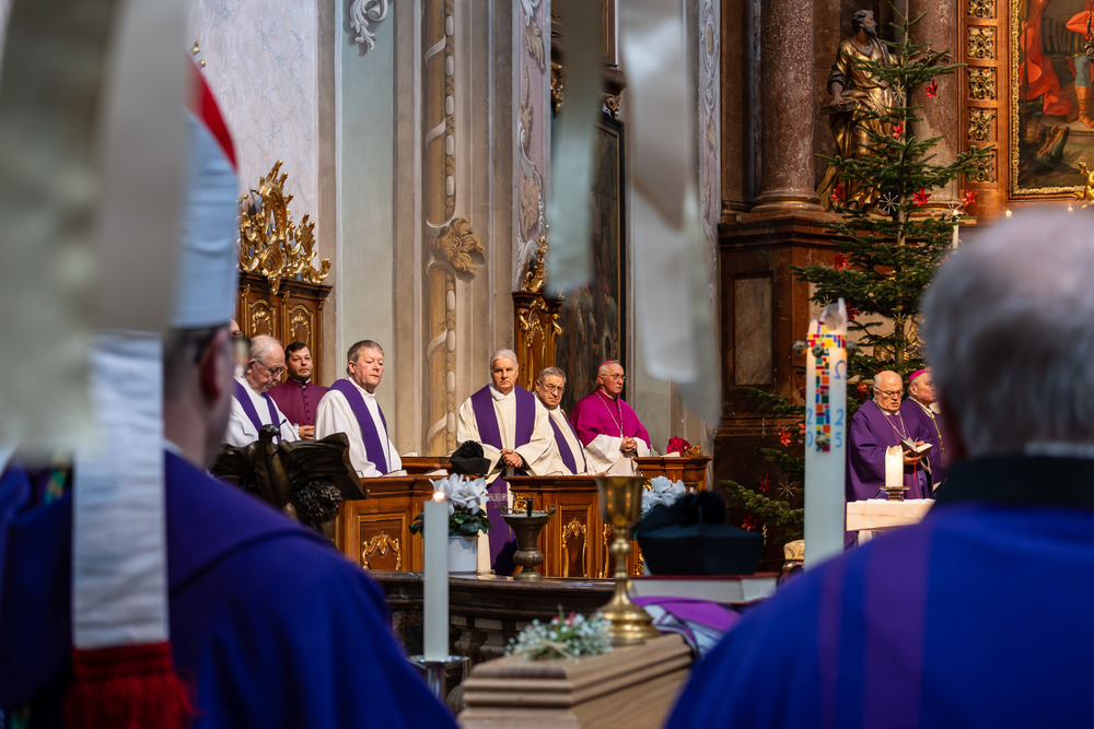 Darüber hinaus waren auch Vertreter anderer Vereine und Organisationen, die H. Ambrosius in seinem Leben wichtig waren, vertreten, u.a. der Ritterorden vom Heiligen Grab zu Jerusalem, die katholische akademische Verbindung Danubia und zahlreiche Ordensleute, Priester, Äbte und Pröpste. Ihnen sowie allen Menschen, deren Lebenswege sich mit denen von H. Ambrosius gekreuzt hatten, sprach Propst Petrus in seiner Predigt den Dank aus. Bürgermeister Christoph Artner, selbst Mitglied des Pfarrgemeinderats St. Andrä, fand sehr persönliche Worte des Abschieds, ebenso wie Gerhard Fichtinger für die Grabesritter.