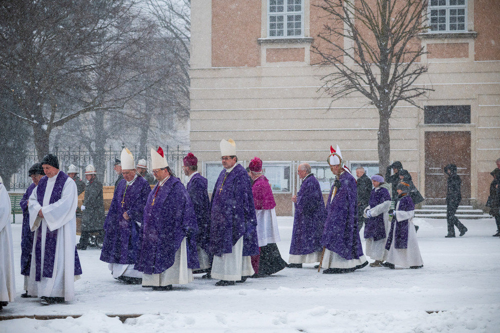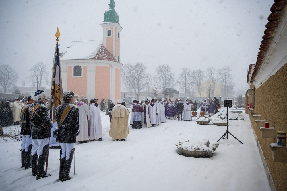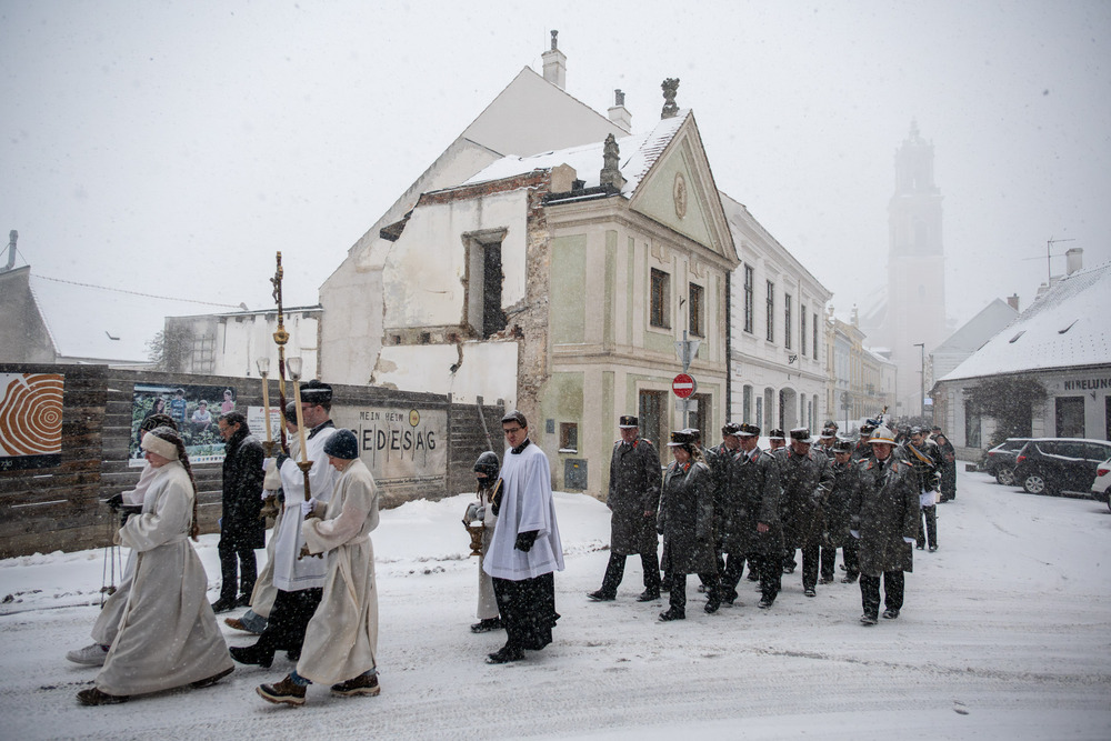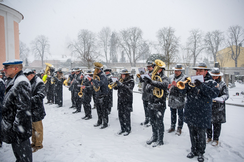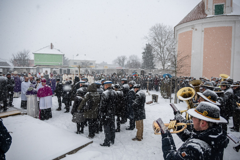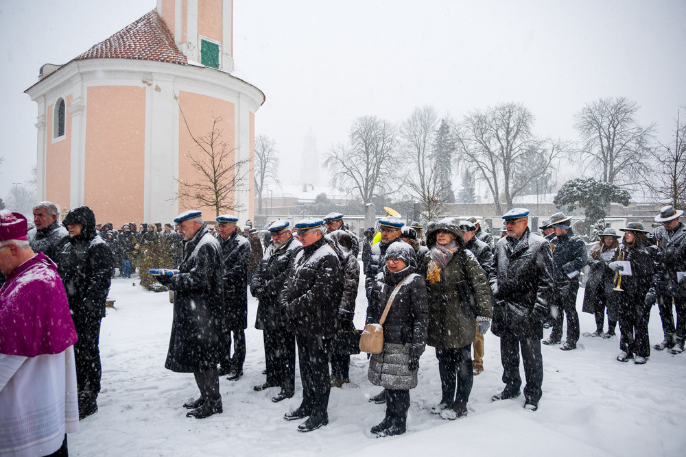 Auch der überraschend am Ende des Requiems einsetzende Schneesturm konnte die Trauergemeinde nicht davon abhalten, den Sarg unseres Mitbruders zum städtischen Friedhof zu begleiten und ihm unter den Klängen der Stadtkapelle Herzogenburg das letzte Geleit zu geben. Bei der anschließenden Stärkung im Pfarrzentrum gab es nicht nur wärmende Gulaschsuppe, sondern auch viele Anekdoten und gemeinsame Erinnerungen auszutauschen.